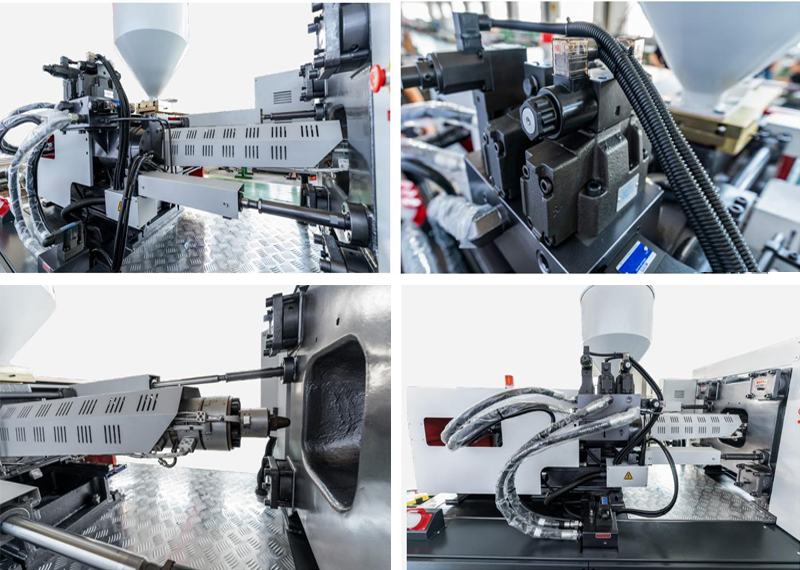 獨特的高效,低噪音液壓回路設(shè)計,極少焊接的液壓回路布局, 壓力、流量比例控制,高性能的液壓元件,油溫過熱預(yù)警, 液壓閥設(shè)置在對應(yīng)工作油路就近處,減少液壓沖擊,油路反 應(yīng)更加靈敏快捷。大流量插裝閥,快速機(jī)油路系統(tǒng),確保整 機(jī)動作快速平穩(wěn),全系列配備注射插裝油路及背壓裝置,提 高了射出速度和精度。