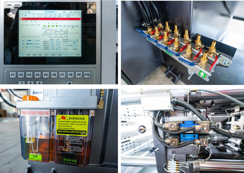 自動定量潤滑系統(tǒng)。根據(jù)開、合模次數(shù)多少來自動控制潤滑,保證鎖模,機(jī)械更穩(wěn)定、可靠,壽命更長;